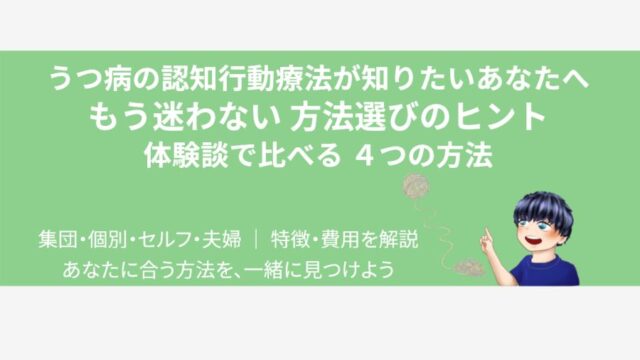 うつ病の認知行動療法(CBT)4種類を19年の体験談で比較。特徴、費用、向いている人、始め方をわかりやすく解説